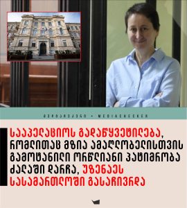 „ბათუმელები“/„ნეტგაზეთის“ დამფუძნებლისა და დირექტორის, მზია ამაღლობელის ადვოკატებმა სააპელაციო სასამართლოს გადაწყვეტილება, რომლითაც ბათუმის საქალაქო სასამართლოს მიერ ამაღლობელისათვის გამოტანილი 2 წლიანი პატიმრობა ძალაში დარჩა, უზენაეს სასამართლოში გაასაჩივრეს.