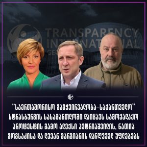 ნათქვამია “საერთაშორისო გამჭვირვალობა – საქართველოს” მიერ გავრცელებულ ინფორმაციაში.