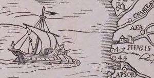 „დიდ მარხვის დროს, – წერს დოსითეოსი, – გაიხსნა სანაოსნო სეზონი და ჩვენ ჩავსხედით იბერიულ ხომალდში, მდ. ხობით დავეშვით შავი ზღვისკენ და მივაღწიეთ ფაზისს, რომელსაც ქართველები რიონს უწოდებენ. ფაზისიდან მივცურეთ ქობულეთში – გურიის ნავსადგურში. აქედან მდინარეს ავყევით 2 საათის განმავლობაში და მივედით გურიის მთავრის სასახლეში 22 მარტს“.