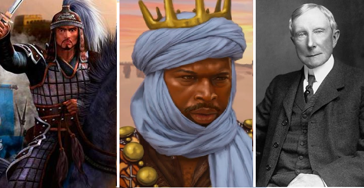 თქვენი აზრით, ვინ უფრო დიდ ქონებას ფლობდა – როკფელერი თუ ჩინგიზ ხანი? გამოცემა “Time”-მა ყველა დროის ყველაზე მდიდარი ადამიანების სია გამოაქვეყნა. ეკონომისტებისა და ისტორიკოსების გუნდთან მუშაობის შედეგად, გამოცემამ ერთმანეთს შეადარა სხვადასხვა დროს მოღვაწე ისტორიული პიროვნებების ქონება და მათი ათეული გამოავლინა, რომელიც ასე გამოიყურება: